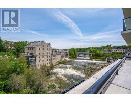 $502 MonthlyLuxury Living in the Heart of Elora! Welcome to the Fraser model at the exclusive Elora Mill Condominiums -opportunity to own a stunning 3rd-floor suite in one of Ontario's most charming and sought-after communities. This west-facing residence offers an inspiring view framed by mature cedars, with a tranquil peek at the Grand River, all from the comfort of your living room. Featuring designer-selected finishes, 10-foot ceilings, expansive windows, and an open-concept layout, this suite delivers effortless elegance. The kitchen is accented with premium cabinetry, quartz countertops, and built in appliances perfect for entertaining or quiet evenings at home. Designed with clean architectural lines, the space flows from a central living area to a private balcony ideal for morning coffee or sunset views. The bedroom offers private views, patio access, and ensuite. Den is perfect for home office or last minute guest as full bathroom is nearby. The unit has full access to main floor lounge, outdoor terrace, outdoor pool/sun deck, gym and yoga space, concierge, coffee/cafe in main lobby, dog wash/grooming station and access to trails. Unit 304includes 1 indoor parking space with plug for EV and storage locker. Enjoy living in the historic village of Elora with access to shops, cafes and restaurants. Whether you're downsizing in style or investing inresort-style luxury, the Fraser model blends boutique condo living with small-town charm. Immediate possession available. (id:50886)
