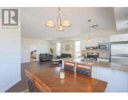 Imagine living in a bungalow-style condo where you can keep the curtains open and still enjoy complete privacy. Entertain guests on your expansive private terrace, offering clear and open views. This sun-soaked 3rd-floor corner unit boasts 9-foot ceilings, indoor parking, and elevator access.The spacious primary suite includes a 3-piece ensuite with an extended 4-foot walk-in shower, paired with a second bedroom and an additional full bath. Oversized windows flood the kitchen, living, dining, and both bedrooms with natural light from three exposures.Highlights include gleaming hardwood floors in the living and dining areas, stainless steel appliances, central air, HRV, in-suite laundry, and a storage locker. The fully accessible building features automatic doors and overlooks a quiet, adult-oriented park with a walking path and benches.Unbeatable location just steps from Cineplex, Indigo, Walmart, LCBO, GoodLife Fitness, Loblaws, Winners, restaurants, and banks. (id:50886)