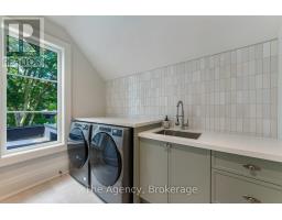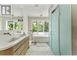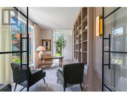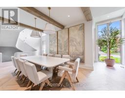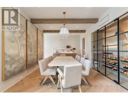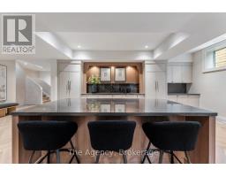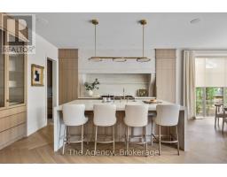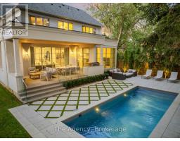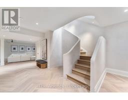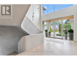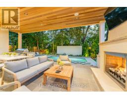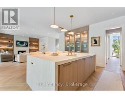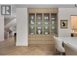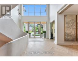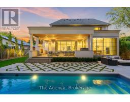 Welcome to 304 Pomona Avenue, a truly magnificent newly built home in Burlingtons highly coveted Roseland community. Step inside and youre greeted by an incredible hand-carved plaster staircase rising through all three levels thats perfectly paired with rift-cut white oak herringbone floors that set an elevated tone. A formal dining room makes a statement with decorative ceiling beams, a glass wine display, and a marble wet bar. The private library draws you in, finished with oak panelled walls and a reading nook with floor-to-ceiling corner windows that flood the room with natural light. The living room completes the main levels gathering spaces with its plaster fireplace, oak shelving with integrated lighting, and full in-ceiling speakers. At the heart of the home, the kitchen offers a large custom plaster hood, oversized waterfall island, porcelain counters, and top-tier appliances including a 60 Wolf double oven, Sub-Zero fridge and freezer, and Bosch dishwasher. Pantry storage with reeded glass cabinetry and a walk-through servery extends the workspace. Just beyond, the breakfast area opens to a beautiful and serene covered terrace with a built-in BBQ, outdoor fridge, fireplace, and cedar-lined ceilingoverlooking the saltwater pool and landscaped gardens. Upstairs, four bedrooms each include private ensuites. The primary suite features a spacious walk-in closet and a spa-like bath with dual vanities, soaker tub, heated floors, and oversized shower. A full laundry room with custom cabinetry completes this level. The lower level expands the living space with a second kitchen, home theatre, gym, fifth bedroom, full bath, and radiant heated floors. Outside, stone patios, mature landscaping, irrigation, and a hydrangea wall create a welcoming backdrop. With 4+1 bedrooms, 7 bathrooms, and over 6,000 sq. ft. of living space, this Roseland residence combines thoughtful design with everyday comfort. Move in and enjoy! (id:50886)