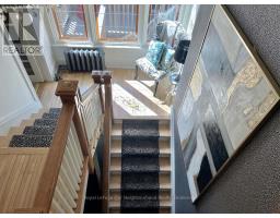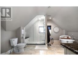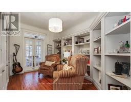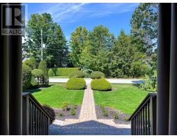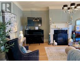 Create your very own Downton Abbey and experience the perfect blend of historic charm and contemporary elegance. This remarkable residence showcases timeless character alongside modern finishings, inviting you to live your best life surrounded by beauty and sophistication.From the moment you enter, soaring grand ceilings on both the main and second floors set the tone for the home's stately presence. Original hardwood floors span the first two levels, preserving the rich charm of yesteryear, while tasteful dcor and oversized rooms create an atmosphere of refined comfort.The beautifully appointed kitchen features travertine flooring, an inviting eat-in area, and a walkout to the backyard oasis. Enjoy quiet mornings or evening gatherings on the cozy wraparound porch with pot lights, or in the enclosed sunroom overlooking lush, English-inspired gardens and a tranquil babbling brook pond.Upstairs, each spacious bedroom offers walk-in closets and grand ceilings, while the large laundry room-with its own walkout to a deck-makes chores a pleasure. The deck connects to a private gym and 3-piece bath located above the heated garage.The third floor is your private master retreat-a true sanctuary featuring a wraparound walk-in closet with custom built-ins and a stunning ensuite. Relax in the claw-foot tub or steamer shower, warmed by the gentle glow of a Napoleon electric fireplace.The large heated loft garage includes hydro, a garage door opener with remotes, and access from both the backyard and laundry room.Outdoors, the property is an absolute haven. Set on a rare double lot, the backyard offers mature perennial gardens, two ponds, a serene fire pit area, and a new fence providing privacy and peace. Enjoy natural gas hookups for your BBQ and future outdoor fireplace-perfect for entertaining in every season. New Fencing installed Fall 2024. Survey on File 2023. Walking distance to Trafalgar Castle (Private School) and Henry St High. (id:50886)