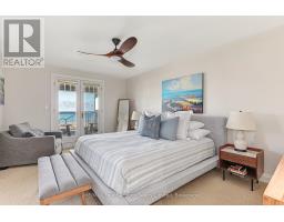 Welcome to luxury waterfront living at Admirals Gate. This rare and coveted bright corner condo offers spectacular, unobstructed views of both Georgian Bay and the escarpment. Set within a quiet and exclusive community, residents enjoy access to a beautifully maintained outdoor pool and manicured grounds, just steps from the water. This 3-bedroom, 3.5-bathroom home is designed for both elegance and functionality. Each bedroom has its own ensuite, plus a convenient main-level powder room. The main floor also features a versatile bedroom/office with built-in cabinetry and closets, complete with ensuite, making it ideal as a main-level primary suite if desired. The newly renovated kitchen boasts quartz countertops, a large island with overhang, a dedicated coffee bar, and seamlessly connects to the dining and living areas. A gas fireplace adds warmth and character, while a walkout opens to a spacious patio overlooking the pool and the Bay perfect for entertaining or quiet relaxation. Upstairs, the expansive primary suite offers a private deck with stunning water views, a luxurious ensuite, and abundant natural light. A third generously sized bedroom, also with ensuite, completes the upper level. Additional highlights include an alarm system, updated windows, new AC unit, freshly paved driveway, and rare parking: two garages plus an additional outdoor spot. Situated just five minutes from downtown Collingwood and fifteen minutes from Blue Mountain Village, this home offers unparalleled four-season living. Ski clubs, golf courses, beaches, and endless hiking and biking trails are all within a short drive. Shops, restaurants, and year-round activities ensure that every season is as exciting as it is beautiful. This Admirals Gate residence is more than a condo its a lifestyle defined by comfort, exclusivity, and breathtaking natural surroundings. (id:50886)