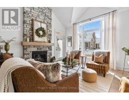 Welcome to refined coastal living in this exquisite townhome, perfectly nestled in the prestigious Hollows neighbourhood at Cobble Beach. Tucked away on a private dead-end street, this spacious 2,069 sq. ft. residence offers 2 bedrooms, 2.5 bathrooms, and a lifestyle defined by comfort, elegance, and tranquility. Step inside and experience thoughtful construction designed to minimize sound transfer, ensuring exceptional peace and quiet. The main floor boasts a seamless open-concept layout with engineered hardwood floors throughout, blending warmth and sophistication. At the heart of the living space, a stunning two-story stone gas fireplace with a classic mantle serves as a dramatic focal point, perfect for cozy evenings.The gourmet kitchen is a chefs dream, featuring ceiling-height custom cabinetry and sleek quartz countertops, ideal for both daily living and entertaining.The main-floor primary suite is your private retreat, complete with a walk-in closet and a spa-like ensuite bathroom. Upstairs, a versatile library and office loft overlook the great room, offering a serene setting for work or relaxation. The second bedroom includes its own walk-in closet and a convenient semi-ensuite bathroom.Step outside to your covered back porch and extended patio, where views of Georgian Bay and the lush surrounding green space await. With west-facing exposure, enjoy golden sunsets and abundant natural light throughout the day. As a resident of Cobble Beach, you're just steps away from world-class amenities: Championship golf course, Tennis courts, Rejuvenating spa, Fine dining, Scenic walking trails, Stunning Georgian Bay shoreline. Whether you're looking for a permanent home or a peaceful weekend escape, this exceptional townhome offers it all. (id:50886)
