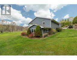 A Rare Country Gem with River View, Privacy, and Over 1.5 Acres in Hungry Hollow! Welcome to an incredible opportunity to own a special property in the charming hamlet of Hungry Hollow. This peaceful retreat offers a lifestyle most people only dream about, with over 1.5 acres of private, beautifully landscaped, with breathtaking views of the river while relaxing from your front porch. Yes, you can enjoy your morning coffee while taking in a tranquil river view. How cool is that? This well-built, spacious bungalow offers over 2,700 square feet of finished living space and checks all the boxes for comfort and functionality. With 4 bedrooms and 4 bathrooms, there is room for the whole family and friends. The main level features a practical and welcoming layout, beginning with an oversized mudroom/laundry area conveniently located by the attached 2-car garage. Adjacent to this is a versatile space perfect for a home office or an additional bedroom. A handy 2-piece bathroom connects you to the heart of the home. The bright kitchen and generous dining area flows effortlessly into the open-concept living room, which opens onto a 40' x 10' covered deck offering panoramic views of the river and countryside. Also on the main level are two additional bedrooms, a spacious 4-piece main bathroom, and a large primary suite complete with a walk-in closet and private 3-piece en-suite. The lower level continues to impress with a cold cellar, utility room, craft space, and an expansive rec room featuring a cozy gas fireplace. Fitness enthusiasts will appreciate the workout room and private hot tub room, perfect for unwinding. The walkout basement leads to a lovely patio, ideal for summer entertaining. Don't miss the private walking trail leading up the hillside and enjoy spectacular views of the entire property. Words like peaceful and unbelievable truly capture the feeling of this country paradise. Book your showing today! (id:50886)