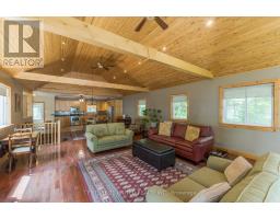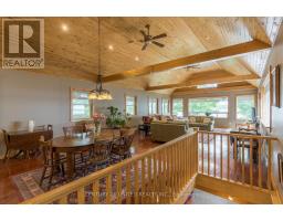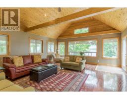 This property is located on one of the premier lakes in the Kawarthas, only 7 minutes from Lakefield and 20 minutes from Peterborough. Being on the Trent system waterway allows for limitless boating. Rare, that the opportunity arises to own such a private location on a dead end road with 200 feet of pristine waterfront. This slightly sloping lot is perfect for the walkout at ground level from the large family room to beautiful level waterfront with expansive views of the lake. Waterfront has great walk-in hard bottom for swimming and plenty of depth for your multi-use watercrafts. Home is in first rate condition and shows pride of ownership. The main floor is open concept kitchen, dining room and living room with vaulted ceilings of natural wood, pot lighting, hardwood and tile flooring and many large windows overlooking the lake. Walkout from living room to large wraparound deck with stairs to beautiful yard and waterfront. Also on main floor is den with walkout to deck, 2 baths, laundry, primary bedroom with walk-in closet and ensuite. Staircase leads down to a huge family room with radiant heat flooring, exceptional windows overlooking water and walkout to waterfront. Lower level also includes 3 piece bath, 2 large bedrooms, utility and storage rooms. Easy access by water or road for golfing, restaurants, shopping and many other activities in the surround area. (id:50886)