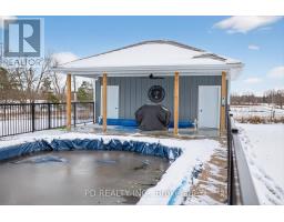 Enjoy the best of country living while being just minutes from all the amenities of Lindsay. This updated and well-cared-for raised bungalow sits on a private 1.23-acre property and offers a truly move-in-ready lifestyle. The main floor features hardwood floors, 3 bedrooms, a family room, a spacious kitchen with built-in appliances, a generous dining area, and a cozy living room with a vaulted ceiling, gas fireplace, and a walkout to the deck overlooking the heated inground pool. The pool includes a new liner (2024) and is complemented by a new pool house with hydro and a covered patio (2023).The fully finished walkout basement, complete with a covered entrance, adds excellent versatility with a second 4-piece bathroom, rec. room, laundry room, plus 2 additional rooms providing plenty of space for family and guests. Car enthusiasts and hobbyists will love the oversized attached 2-car garage, which is insulated, heated, and equipped with garage door openers. A fully insulated detached 2-car garage/shop with a covered apron provides even more room for storage or projects. Additional features include: metal roof, forced-air propane heat, central air conditioning, GenerLink, and ample parking. This property offers the perfect blend of comfort, privacy, and convenience - a must-see opportunity! (id:50886)