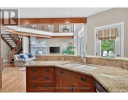 Welcome to 3081 Beachwood Dr, an exquisite custom-built Arts & Crafts Revival estate on the shores of Lower Buckhorn Lake. With over 160 feet of pristine, swimmable waterfront and a gently sloping, landscaped lot, this home offers a rare blend of privacy, craftsmanship, and natural beauty. Built in 2004/2005 by Paul Graham Carpentry, it was designed to capture unobstructed views of the dotted islands from nearly every window, seamlessly blending warm wood finishes, stonework, and natural light. The main floor features oak cabinetry and staircase by Steve Griffin, granite kitchen countertops, and a stunning locally sourced limestone fireplace by Ralph Parker. Flooring includes hardwood and heated tile, with radiant in-floor heating extending throughout the lower level. The primary suite boasts a spa-inspired ensuite with air tub and heated tile, a walk-in closet, recessed ceiling with hidden surround lighting, and a private balcony overlooking the lake. Two upper guest bedrooms share a Jack & Jill bathroom, while the lower level offers a spacious family room, an additional bedroom, and a marble-finished bath. Mechanical highlights include a new Generac 14 kW generator (2025), a well with UV & filtration system for household water. Triple-pane curved windows, zoned heating/cooling, air exchanger, humidifier, central vac, and built-in alarm system ensure comfort and peace of mind year-round. Outside, enjoy limestone landscaping quarried from the lot, a fully paved driveway and fire route, an oversized garage with two 9ft doors, and a boathouse with wet slip. The dock, widened five years ago, offers excellent swimming and boating access, making lake life effortless. 3081 Beachwood Dr is more than a home its a thoughtfully designed lakeside sanctuary, ideal for entertaining or quiet retreats in every season. (id:50886)