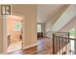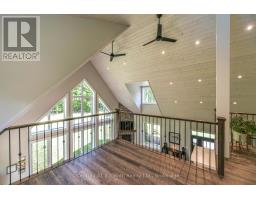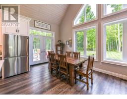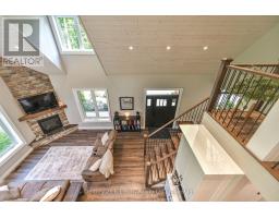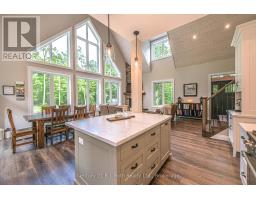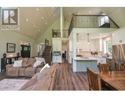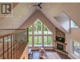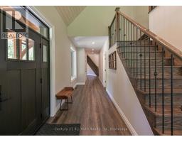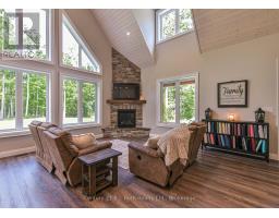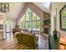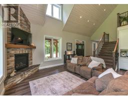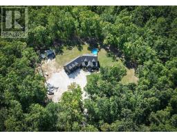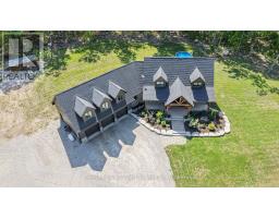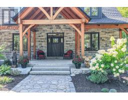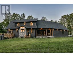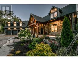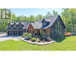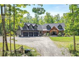 One-of-a-kind modern Craftsman, nestled among the trees, offering ultimate privacy on a 50-acre property. Welcoming covered entry w/rich stonework & Douglas Fir Timber frame accents sets the tone for the exceptional living space within. Step inside to the Great rm. w/natural light, soaring ceilings & open-concept layout, perfect for both family life & entertaining. Custom solid maple Kitchen cabinetry w/Quartz countertops & centre island. The kitchen flows seamlessly into the dining area & great room, complete w/a cozy fireplace & expansive windows overlooking the surrounding forest. Walkout to deck & above-ground pool with 54" walls. Main floor Primary suite w/walkout, Ensuite w/heated floors, soaker tub, sep. tile shower, & quartz-topped vanity plus Walk-in closet. Main flr. 2pc powder rm, laundry, & a spacious mudroom w/walkout to a covered Douglas Fir and Cedar deck, plus direct access to the garage. Upstairs in the main part of the home, you'll find 2 additional Bdrms., a 4 pc. bath, dormer-lit living spaces, & a versatile loft area, ideal for a home office or studio. Above the garage, a second upper living space provides a large family room, perfect for gatherings. ICF-constructed 3-car garage offers ample parking & storage w/9 x 8 doors, side-mount openers w/deadbolt locks. While roughed in for in-floor heating, the incoming heat line from the outdoor wood furnace keeps the garage warm during the winter months. The garage also includes a man door to the side yard & direct access to both the main floor & basement of the home. Whether relaxing on the front porch or covered back deck, hosting gatherings, exploring the trails, or simply enjoying the quiet surroundings, this property delivers the perfect balance of elegance, comfort, and rustic charm in a serene country retreat. 200-amp service, LED pot lights, 22KW Generac whole-home generator. Upgraded BIBS insulation. Outdoor wood furnace, plus propane forced-air heating & central air. (id:50886)