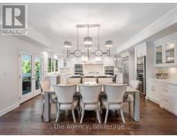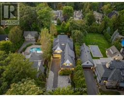 Set on prestigious Lakeshore Road in Roseland, one of Burlington's most sought-after neighbourhoods, this custom-built residence offers over 6,000 square feet of finely finished living space on a rare 217-foot-deep property. Located within the Tuck/ Nelson school district & just steps from the lake, it combines an exceptional address with remarkable scale & design. The main level is anchored by an elegant great room with a gas fireplace, custom built-ins with glass accents,& expansive windows overlooking the rear gardens. A private home office, formal dining area with a wet bar, & a chefs kitchen designed for both daily living & entertaining set the tone for the home. The kitchen features a large quartz island with seating, dual dishwashers, dual Frigidaire Professional wall ovens, a gas range with decorative hood, warming drawer, microwave, & KitchenAid stainless steel refrigerator with ice & water. Custom soft-close cabinetry, a walk-in pantry, & a walkout to the covered patio complete this well-appointed space. A separate main floor laundry room with custom cabinetry, quartz counters, adds convenience. Upstairs, four bedrooms each feature their own private ensuite baths and custom closet organizers, including a self-contained in-law suite with a separate entrance featuring a living area, bedroom, and full bath ideal for extended family. The 3rd loft, currently used as a gym, offers flexibility as an additional bedroom or creative studio. The fully finished lower level extends the living space with a large recreation room with a wet bar, sitting area with gas fireplace, sixth bedroom with ensuite, music/media room,& a walk-up to the backyard. Set on a 200-foot-deep lot, the property offers rare privacy and scale, with a resort-style backyard featuring a heated saltwater pool, stone patio, covered terrace & outdoor kitchen. A three-car garage and additional parking complete this distinguished home, just minutes from downtown Burlington and the lakefront. (id:50886)