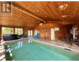 Incredible Opportunity, Touch of Heaven Nordic Spa and Retreat . Welcome to Touch of Heaven — a rare and luxurious business opportunity set on an awe-inspiring 157 acres of lush Northern Ontario landscape. This established and beloved Nordic spa and retreat offers a turnkey wellness experience, complete with all equipment and facilities ready for operation. The centerpiece is a stunning 2,400 sq.ft. owner’s residence featuring a chef’s dream kitchen with granite countertops and island, three spacious bedrooms, spa-like bathrooms and Beautiful porcelain tile in-floor heating, and a dramatic floor-to-ceiling two-way stone fireplace. The complete building facility offers over 8000 ft.² the luxury spa boasts 4515 ft.² and includes a separate self-contained and beautifully appointed 1,432 sq.ft. two-bedroom apartment — ideal for Airbnb or bed-and-breakfast use. Inside the spa, guests are welcomed into a serene atmosphere with vaulted ceilings, heated slate floors, full men’s and ladies’ washrooms and change areas, massage and therapy rooms, and a breathtaking indoor enclosed pool. Services have included massages, facials, body scrubs, manicures, pedicures, and complete overnight getaway packages. With Phase Two of the retreat partially developed, the next owner can unlock massive potential by completing the planned outdoor Nordic spa experience — including hot tubs, cold saltwater pools, sauna, gazebo, and more. Whether you’re looking to invest in a thriving wellness business or create a private retreat oasis, Touch of Heaven offers unmatched opportunity, beauty, and growth in the heart of Northern Ontario. (id:50886)