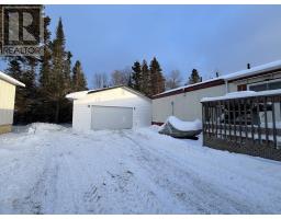 Welcome to this inviting spacious mobile home, perfectly positioned on a large, private lot that offers direct access to some of the area’s best outdoor recreation. As you enter the home, you’re greeted by a bright and open family living room that immediately feels warm and welcoming. The oversized window fills the space with natural light, while built-in storage shelving provides a practical solution for keeping everything organized. The kitchen features plenty of cabinetry, generous counterspace, and a convenient layout. The flow between the kitchen, dining area, and living room creates a comfortable and functional main living space. Two bedrooms are located on one side of the home, offering privacy for family members and guests. A clean and bright 4-piece bathroom services this side of the home. The impressive primary suite occupies the opposite end of the home! This spacious bedroom has a massive closet and a 4-piece ensuite featuring warm wood panelling that adds a cozy, rustic charm. Additional conveniences include main-floor laundry, electric forced air furnace, and 200 amp service. The large lot provides ample parking for 4+ vehicles. The 23 ft x 29 ft detached garage is a standout feature, complete with a 14 ft wide electric overhead door, making it perfect for storing recreational toys, tools, or vehicles. A cozy wood stove inside the garage helps keep the space warm during cooler months, and to complete this experience, you will have your own private sauna—an incredible luxury that’s especially enjoyable on crisp northern nights. Backing directly onto greenspace, this lot offers privacy, peaceful views, and direct backyard access to nature. From your own yard, you can follow a trail that leads out to Penn Lake Road, opening up a vast network of sledding and quadding trails. Thoughtfully designed, well-maintained, and surrounded by nature, this property is the perfect combination of comfort, practicality, and northern charm. (id:50886)