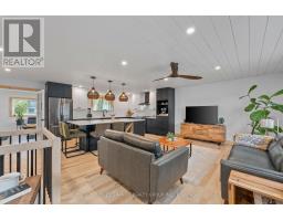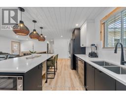 Modern Comfort Meets Scandinavian Warmth - in the Heart of Cardiff, Step inside this freshly renovated home that perfectly blends modern design with Scandinavian charm. The open-concept layout feels bright, warm, and cohesive, featuring Lifeproof "Savannah Islands" flooring, shiplap ceilings, and natural pine accents throughout. At the heart of the home is a showpiece kitchen - a massive quartz island that seats six, premium black stainless LG appliances, and custom cabinetry with thoughtful details like a coffee station and recessed microwave nook. Enjoy a spacious four-season entry / mudroom / sunroom - the ideal spot for morning coffee, plant lovers, or a cozy reading nook. The living area features a custom ash staircase, oversized window with remote blind, and walnut ceiling fan - tying together warmth and elegance. The spa-inspired bathroom includes a deep soaker tub, floating vanity, and rainfall shower, while both bedrooms offer solid-core doors, custom window coverings, and walnut ceiling fans. Enjoy a centrally located laundry area featuring a premium LG ThinQ washer-dryer tower for easy main-floor access. Downstairs, the bright, dry basement offers flexible space for a home office, gym, and storage, plus a second laundry setup and extra fridge - practical for real life. Outside, you'll find a fully fenced backyard, fire pit area, and a new front deck with modern railing. A lockable 11'7' Keter shed and ample parking complete the package. Every inch of this home reflects quality, style, and comfort - all in the welcoming community of Cardiff, minutes from Silent Lake, Paudash Beach, trails for every season, and everyday amenities. (id:50886)