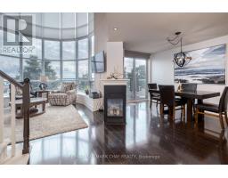 $947.09 MonthlyWelcome to this beautiful 2 storey waterfront condo located at Grand Harbour. This plan offers a soaring 18 ft window with direct lake views and beautiful city views, day or night. Grand Harbour is an impeccably maintained building with recent upgrades to common areas, a beautiful indoor pool, party room, gym/exercise room, plenty of visitor parking and guest suites for your overnight visitors. This bright unit offers over 1200 sf of living space including main floor living, dining, kitchen, half bath, laundry room and triple sided gas fireplace. A balcony to people watch or watch the boats come and go from the marina will be where you spend many warmer days. The upper level offers even more spectacular views with a den, perfect for a home office or guest area as well as a large primary bedroom with generous walk-in closet and primary bathroom offering a soaker tub and walk-in glass shower. Additional recent improvements of new light fixtures, window coverings and some new appliances can be viewed in person. Pets welcome, with restrictions. Underground parking and a locker complete the package for a carefree lifestyle. (id:50886)