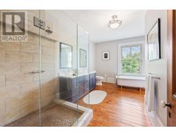 A rare find within the City of Barrie - private, treed 1.23 acre lot, backing onto Lover's Creek, in the exclusive lakeside South Shore neighbourhood. A unique piece of history, the home was built in 1860, then relocated & restored to preserve the character in 1988, while modernizing the homes structural components, including plumbing, HVAC, electrical & foundation. This home has continued to undergo extensive renovations since. W/the Marina & walking trails steps away & a short walk to beaches of Kempenfelt Bay, along w/the proximity to Barrie's downtown & GO Train station, this property is the perfect blend of outdoor lifestyle & city conveniences. Step into the impressive front foyer - the craftsmanship of the original staircase, hardwood floors & 16" baseboards. A spacious family/dining area w/a 2-pcs bath, double french doors leading to rear yard & convenient side entrance. The renovated kitchen boasts custom cabinets, stone counters & top of the line built-in appliances, large island & walk-in pantry. Open concept & tastefully restored, perfect for entertaining. The expansive living room features gas fireplace & beautiful, large windows w/tranquil views. On the 2nd level you will find the primary suite w/it's own fireplace, walk-in closet & 5-pcs semi-ensuite boasting a new double vanity, vintage stand alone tub & large walk-in shower. Also on this level - the guest suite, which was the original staff quarters. It offers a private bedroom, 3 pcs bath & bonus space, 2nd floor laundry room, along w/its own staircase to the main level. The basement is finished w/ a rec room, large utility/laundry room, & workshop with bulkhead door access to the yard. A fully fenced backyard has a cottage-like feel w/ an expansive, covered, composite deck, perfect for enjoying a morning coffee or afternoon BBQ while taking in the forest views. The long laneway leads to oversized double car garage w/loft space. Modern conveniences; BI deck heater, BBQ hook up, irrigation system. (id:50886)
