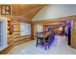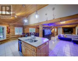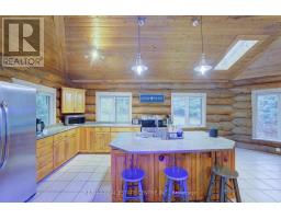 Tired of city living? Looking for a tranquil setting with a unique home? This could be the perfect home for you! This Scandinavian style log home is situated well away from the road for privacy on a beautiful, 11 acre lot with 360 degree scenic views. The home features a grand, open concept style with high vaulted ceilings, a skylight and upper windows providing lots of natural light, huge wood beams and walls, a spacious main floor layout with tiled flooring, a modern kitchen with island and Stainless appliances, and a full 4 piece bathroom. The second level is a huge loft with the Primary Bedroom and ensuite, and plenty of space for the workout and office area too! The basement has 3 additional bedrooms, a generous storage room, utility room, and a REC room. The home has hydronic in-floor heating for your comfort. For the car enthusiast or handyman, outside, there is a 30 X 40 insulated & heated shop/garage with double 10Ft Doors (interior has been divided into a 680s.f. heated workshop which can hold 3 cars and a 420s.f. single car garage with a TESLA charger). The property has lots of mature trees, two spring fed ponds with a small dock to relax on in the evening, and space for your canoe or paddleboat. The setting is perfect for evening hangouts around the firepit or on the porch. There is a 5 acre fenced pasture in front - raise your own livestock or ride your ATV here, another 3 acres at the north end, a small shed and a barn with water and 2 paddocks in addition to the 2 paddocks behind the garage area. There are many possibilities with enough land to have your own hobby farm, grow your own crops and raise your own chickens and eggs if that lifestyle appeals to you. Location is conveniently just north of Mount Forest and is just off Hwy 6 but below the grade of the highway for complete privacy! This home has everything you could want - it has to been seen to really appreciate all it has to offer. Come visit and see for yourself!! (id:50886)