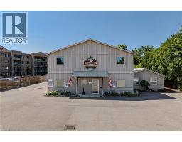 Prime business location on Queensway in Simcoe! Property sits on .8 acres and has a frontage of 97 feet. Main floor unit with two separate entrances, 8 ft grade level roll up door and just over 2700 sq ft of space (400 sq ft office space). Lots of parking and highway exposure. Featuring wheelchair accessibility, generator, security system and a large paved parking lot. Zoning allows for numerous uses for flexible business operations (id:50886)