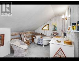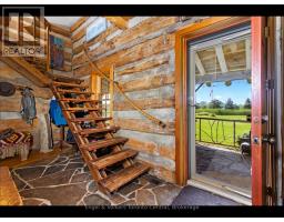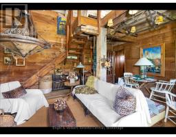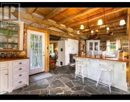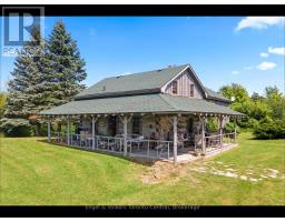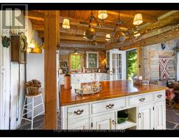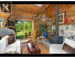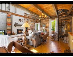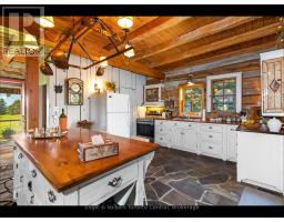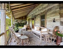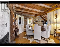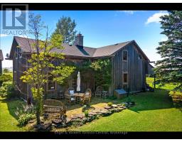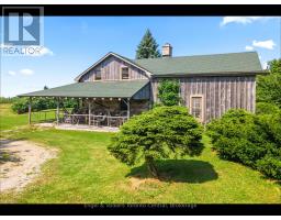Rustic charm meets nature's serenity! Situated on 5.3 acres, just south east of Meaford, this home was reconstructed on this site, bringing together a local heritage dwelling with a cabin from Quebec. The current owner oversaw this reconstruction, insisting on strict adherence to detail. Over the years, modern influences were added but not at the expense of history. This special home offers two bedroom and 2 baths, with a loft above the living room that could be used as a third bedroom or home office. A flagstone entrance and hand finished wooden floors add to the historical charm. The open concept kitchen/dining area lends itself to family gatherings and intimate dinners. The two-sided fireplace services both the dining area and living room. The primary bedroom and ensuite and a second bedroom are located on the second floor. The owner has carefully chosen furniture and accessories to enhance the character of the residence. A wrap around covered porch borders the house on two sides, adding outdoor sitting area for entertaining or relaxing. Steps away from the house is the studio--another historical building that, with renovations, would increase the living space on the property. Attached to the studio is a double car garage. The property has many features---a pond, aerated by an authentic windmill, a ravine with trails and mature oak and maple trees, and pastoral vistas that add to the serenity of this uniqueness of this place. The property is situated between Meaford and Thornbury, just a short drive to the many special activities taking place in these communities all year long. This property is ideal for both full time living and a perfect weekend retreat. Skiing, boating, golf, biking and hiking are also closeby. This is truly an ideal place to enjoy the lifestyle that the Georgian Bay area has to offer. (id:50886)
