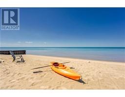 Charming lakefront retreat on 75ft of stunning shoreline overlooking the crystal blue waters of Lake Huron. Tucked away on a private road, surrounded by mature trees, sits a beautifully crafted beach house with coastal inspired design & wall to wall windows showcasing remarkable sunsets over the water. From the courtyard you are welcomed through double doors to an inviting, character filled space. Sun streams in from the many windows highlighting the warm wood beams, staircase railing, wood clad vaulted ceilings & natural toned hardwood flrs. Featuring ~3,000 sq.ft. of living space, this thoughtfully designed home offers 4 bedrms & 3 full bathrms on the main floor. The loft/mezzanine boasts a 5th bedrm, 1/2 bathrm & flexible living space where you could set up a cozy reading nook, creative artist studio, home office or all of the above. At the heart of the home lies the open-concept living area with a stone surround gas fireplace, spacious kitchen with breakfast bar & a built-in dining nook. Imagine the fun gathering as everyone sits down to dinner with the lake as your backdrop. Wake up to the sound of gentle waves hitting the shore from the primary bedrm retreat that offers privacy with your own ensuite bathrm & walk-in-closet. Sliding doors from the main living area provides for a seamless flow between indoors & outdoors. Stepping outside to the gorgeous backyard, your choice of where to relax are many - be it on the stone patio with hot tub, down on the deck overlooking your private beach or sunbathing on the sand at the water’s edge. Although you feel far away from it all, necessities are close by & you are only minutes to the beachside community of Bright’s Grove. Enjoy paddle boarding, kayaking & boating - or stay on land with tennis & pickleball courts nearby. Whether you are dreaming of year-round beachside living, planning family getaways or looking for a home you could occasionally rent out as an AirBnB look no further than this exceptional property! (id:50886)