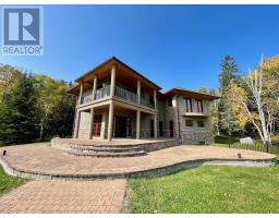 Here is the ideal waterfront property with a gorgeous 4 bedroom/4-bathroom custom home which includes a two storey, 2 bedrooms rental home, all on a 7.5 acres property, with over 1400 feet of lakeshore. A completely custom two storey family home, features over 4000 square feet of living space with 10’ ceilings and 8’ doors throughout to start, hardwood and heated ceramic flooring, 3 bedrooms plus an oval shaped office on the second floor, 4 full baths and a full basement. Main level features a spacious living room with maple hardwood floors, a garden door to a covered terrace, solid Maple kitchen cabinets with pantry, pull outs and soapstone countertop, sit up nook and a large oval dining area. Oversize sunken family room with 12’ ceiling and 2 garden doors. 3 pc main level bath, janitor closet and a large storage/utility room with outside access completes the main level. 5’ wide hardwood stairs take you to the amazing second level which emphasizes a grand master bedroom with garden doors to a covered balcony, full length hallway closet and a custom ensuite (requires finishing), 2nd and 3rd bedrooms, 2 garden doors to balconies with separate bathrooms. Second floor laundry room and a custom office room. Pellet boiler heating system with a propane boiler back up. Central A/C for each level. Lake water system includes a self-cleaning tannin unit, self-cleaning media filter, and 3 more media filter before the Ultraviolet UV system. Detached 2 car matching garage and a 2-car workshop garage. Unistone patios and walkway to the waterfront with 4-tiered stone retaining walls, Gambian baskets and a massive water deck. (id:50886)