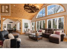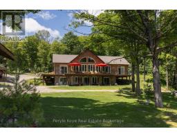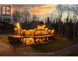 Do you want to know the difference between a property...and a legacy? Imagine 1,800' of shoreline, extended by thousands of acres of Crown land. Over 280+ AC that feels like total independence. This is privacy perfected, & freedom realized! Let's start at the beginning - the driveway is unlike anything you've ever experienced. Nearly a km long, w/ underground hydro. Every turn cuts through forest, building anticipation. At the heart, sits a custom home built in 2018 - 3 beds, 3 baths, a finished walkout, vaulted ceilings, a fireplace, a Muskoka Room, & an expansive deck overlooking the lake. In-floor heating, an outdoor wood furnace w/ propane backup, a full-home automatic generator, & a separate coach house above the 870 Sq Ft Garage. This is for those who think in decades, not weekends. Tucked among the trees, a 830 sq ft cabin waits quietly. The perfect vacation within your staycation. When the weekend hits, it's game on - tennis, pickleball, or basketball. There's 2 saunas - for the moments you pause. An outdoor pizza oven - for the ones you share. And with this much shoreline, choosing a favourite dock might take all summer. Outside, the 280+ Ac sanctuary becomes your personal playground. This is where the noise stops, & nature begins its symphony again. Kilometres of private ATV trails weave through forest, past stocked ponds, a 150' waterfall, & a maple forest w/ commercial syrup operation potential. You even have an aggregate pit. Because here, you don't just own land - you own resources! Access the D-trail system through crown land - or across the lake when winter locks it in ice. And still, there's more here than any camera could ever capture. Multiple separately deeded parcels, each w/ lake access, offering development potential. This one doesn't compete within a category - it defines it. This is the moment when legacy stops being an idea - and becomes a decision. When you stop waiting for the future, and start creating it. Where tomorrow starts with you! (id:50886)