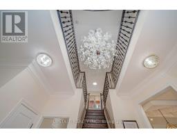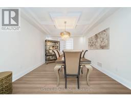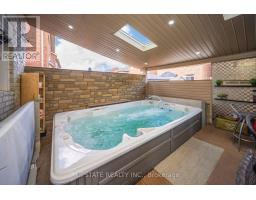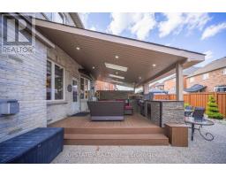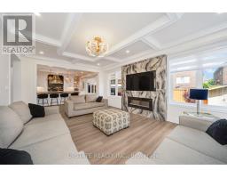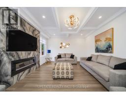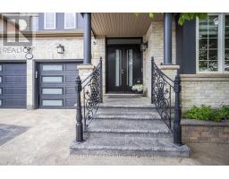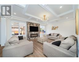 Welcome to this meticulously maintained detached home with a double-car garage, nestled on a quiet and highly sought-after circle. This residence showcases a blend of luxury and functionality, beginning with an impressive custom double-door entry that leads into a bright main floor enhanced by rich hardwood flooring throughout. The formal living room boasts a large window complemented by elegant crown molding that adds a refined touch. Adjacent is a separate dining room with coffered ceilings. A dedicated office, enclosed with classic French doors and custom built-in cabinetry. The chef-inspired kitchen features top-of-the-line built-in stainless steel appliances, a spacious center island with premium quartz countertops, and extended custom cabinetry with under-cabinet lighting. Additional highlights include pot lights, a hidden pantry, and a seamless flow into the adjoining family room. This inviting space is finished with a stunning quartz feature wall, a gas fireplace, coffered ceilings, and ambient lighting. Upstairs, you'll find four spacious bedrooms. The primary retreat includes hardwood flooring, pot lights, a custom walk-in closet, and a luxurious 5-piece ensuite with dual vanities, a soaker tub, and a separate glass shower. The additional bedrooms are bright and generously sized. The finished basement offers even more living space with laminate flooring, pot lights, a bedroom, and rough-in for a future kitchen, perfect for extended family or an in-law suite. The exterior is equally impressive, with patterned concrete upgrades in both the front and backyard. The backyard oasis features a composite deck with built-in lighting and an 8-person spa swim pool, making it the ultimate space for entertaining. Ideally located in a family-friendly neighborhood, this home is within walking distance of Southfields Community Centre, shopping, places of worship, and parks and provides easy access to major highways. (id:50886)