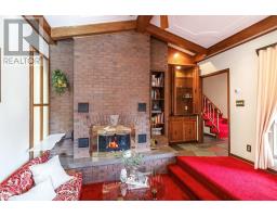 Spacious and surprisingly large at 1,950 ft², this home truly stands out from all the rest! Spend your evenings spinning records and mixing cocktails in a living room that channels classic 1970s design, featuring vaulted wood-beamed ceilings and an iconic conversation pit. A true ‘70s showpiece with a wood-burning fireplace, wet bar, and built-in shelving in vintage style. Formal dining room with sunny south-facing windows and built-in storage, connects to an eat-in kitchen featuring solid wood cabinetry. Main floor also features a cozy den/ office with a wood mantel and fireplace, a primary suite, 4pce bath and convenient laundry for main-level living Upstairs features two generously sized bedrooms and a 3-piece bath. The lower level is mostly unfinished, offering great storage space and a finished space for office/workout room. The private backyard with wood deck is surrounded by mature trees. Attached single garage includes double-door access to the yard ideal for storage in the backyard. This showstopper home is perfect for investors, retro enthusiasts, or anyone who wants to preserve and celebrate its nostalgic charm! (id:50886)