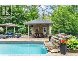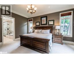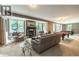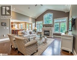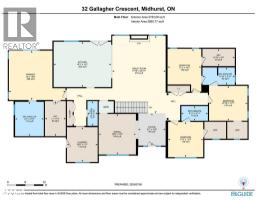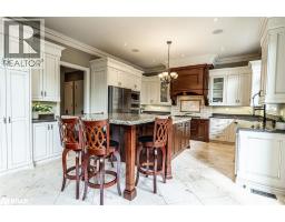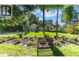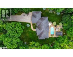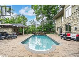 OVER 5,400 SQ FT OF SOPHISTICATED LUXURY WITH A SALTWATER POOL ON A SECLUDED 1.25 ACRE PROPERTY IN MIDHURST! Set at the end of a winding, tree-lined driveway on prestigious Gallagher Crescent, this extraordinary estate offers over 5,400 finished sq ft of refined living on more than an acre of privacy in one of the area’s most exclusive neighbourhoods. Surrounded by custom homes and minutes to parks, trails, schools, golf, skiing, shopping, and Hwy 400, the stately stone and stucco exterior is framed by manicured gardens and an oversized triple garage. The backyard is an entertainer’s paradise, showcasing an inground saltwater pool with a newer liner and stone waterfall, a fire pit, and a fully equipped pool house with sink, fridge, and covered porch, all surrounded by extensive stone interlock. Timeless details include crown moulding, solid wood doors, detailed trim, hardwood floors, and pot lights. The great room boasts vaulted ceilings and a gas fireplace, while the formal dining room features a coffered ceiling. The chef’s kitchen offers granite counters, a large island with seating, stainless steel appliances including a built-in oven and stovetop, two-tone cabinetry with crown moulding, a wood range hood, and a walkout to the balcony. Four main-floor bedrooms include a luxurious primary suite with a 5-pc ensuite and custom walk-in closet, a second bedroom with private ensuite, and two connected by a Jack & Jill bath. The finished walkout lower level expands the living space with a rec room and wet bar, gas fireplace, theatre room, gym area, an additional bedroom with built-in wardrobes, and a 3-pc bath. Crafted for those who desire a #HomeToStay where elegance meets unrivalled privacy. (id:50886)