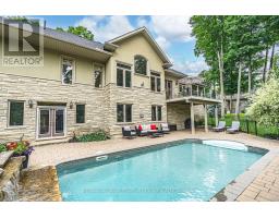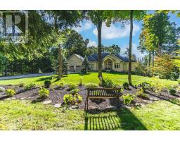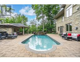 OVER 5,400 SQ FT OF SOPHISTICATED LUXURY WITH A SALTWATER POOL ON A SECLUDED 1.25 ACRE PROPERTY IN MIDHURST! Set at the end of a winding, tree-lined driveway on prestigious Gallagher Crescent, this extraordinary estate offers over 5,400 finished sq ft of refined living on more than an acre of privacy in one of the areas most exclusive neighbourhoods. Surrounded by custom homes and minutes to parks, trails, schools, golf, skiing, shopping, and Hwy 400, the stately stone and stucco exterior is framed by manicured gardens and an oversized triple garage. The backyard is an entertainers paradise, showcasing an inground saltwater pool with a newer liner and stone waterfall, a fire pit, and a fully equipped pool house with sink, fridge, and covered porch, all surrounded by extensive stone interlock. Timeless details include crown moulding, solid wood doors, detailed trim, hardwood floors, and pot lights. The great room boasts vaulted ceilings and a gas fireplace, while the formal dining room features a coffered ceiling. The chefs kitchen offers granite counters, a large island with seating, stainless steel appliances including a built-in oven and stovetop, two-tone cabinetry with crown moulding, a wood range hood, and a walkout to the balcony. Four main-floor bedrooms include a luxurious primary suite with a 5-pc ensuite and custom walk-in closet, a second bedroom with private ensuite, and two connected by a Jack & Jill bath. The finished walkout lower level expands the living space with a rec room and wet bar, gas fireplace, theatre room, gym area, an additional bedroom with built-in wardrobes, and a 3-pc bath. Crafted for those who desire a #HomeToStay where elegance meets unrivalled privacy. (id:50886)