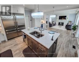 Welcome to this beautifully designed 3000 sq ft home on a premium pie-shaped lot in Stoney Creek's sought-after Lake Pointe community. This property sits on Kingspoint Circle, just steps from the lake, Fifty Point Conservation Area, major shopping, and convenient commuter routes. Built by Marcasa Homes, the exterior features brick with stone and stucco accents for a modern, upscale look. Inside, you're greeted by a wide open layout, an impressive oak staircase with iron spindles, and contemporary hardwood floors throughout. The craftsmanship shows in every detail. The kitchen is a standout, with extended maple cabinetry, textured glass display doors, pot drawers, a large breakfast island, a pantry-style fridge enclosure, granite counters, and a striking backsplash. The family room offers a gas fireplace with a recessed TV niche and elegant millwork, including decorative ceilings, deep baseboards, and upgraded interior doors. Upstairs, the primary suite is a true retreat with a luxury walk-in closet and a spa-inspired ensuite featuring a double vanity. The second bedroom also has its own ensuite, ideal for family or guests. This home blends quality construction, thoughtful design, and a prime location, offering a move-in-ready lifestyle near the waterfront and nature. ** This is a linked property.** (id:50886)