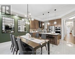 Welcome to this exquisite 4+2 bedroom, 5-bathroom detached home offering over 4,500 sq. ft. of elegant living space in the prestigious Green Valley Estates. One of the largest models in the community, this meticulously maintained residence showcases 10-ft ceilings on the main floor, hardwood flooring, smooth ceilings, custom molding on both main and second levels, pot lights throughout, and grand double wrought iron entry doors. The upgraded gourmet kitchen features extended cabinetry, a walk-in servery, premium Jenn Air appliances, and a large centre island with breakfast bar-perfect for family gatherings and entertaining. The professionally finished basement with a separate entrance provides excellent potential for extended family or rental income. Additional highlights include Bose ceiling speakers, zebra blinds, interlocked front and backyard with gazebo, exterior pot lights, backyard storage, security cameras, and a fully fenced yard. The luxurious primary suite offers his and hers walk-in closets with custom organizers and a spa-inspired 6-piece ensuite. No sidewalk-extra parking and outstanding curb appeal. Ideally located near Hwy 400, GO Station, top-rated schools, parks, shopping, and all amenities. (id:50886)
