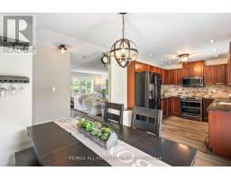 Welcome to this stylishly finished 2+1 bedroom, 3.5 bath FREEHOLD townhome offering 1,410 sq ft of thoughtfully designed space (per MPAC), nestled in a quiet, well-kept neighbourhood with quick access to South Balsam Trail. Built in 2009, this low-maintenance home blends comfort, function, and timeless appeal.The attractive exterior features a solid brick facade with stone and vinyl accents, interlock walkway, and an interlock extended parking pad (2015) for an additional vehicle. Enjoy a landscaped backyard retreat with a pergola with roller shades, interlock patio, riverbed rock gardens and shed. The single-car garage (door updated 2018) is drywalled, clean, and equipped with opener and remote. Inside, the main floor offers wide plank hardwood flooring (2020), California shutters, and elegant updated lighting. The spacious foyer opens to a dramatic two-storey ceiling and stylish powder room (2018). Relax in the living area with custom built-ins, a shiplap feature wall (2021) with included glass art installation and electric fireplace.The open-concept kitchen and dining area includes granite counters, wood cabinetry, stone backsplash, and Samsung black stainless appliances (2017). A patio slider leads to your private outdoor space. The main floor also features a large principal bedroom with 4pc ensuite and two closets, main floor laundry, and interior garage access.Upstairs offers a spacious second bedroom (no closet), updated staircase, wide plank laminate (2022), and a 4pc bath. The finished lower level (2020) includes a bright recreation room with barn board accents, kitchenette with quartz counter, two bar fridges (2021), and an office space with sliding barn door. A third bedroom with dual walk-in closets and a full 3pc bath complete the home. A perfect blend of style, comfort, and ease of living. Updates include: Roof replaced in 2023 with warranties, AC 2015, Staircases (2020 and 2022), Backyard Landscaping (2015) (id:50886)