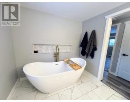 Welcome to this beautiful 2-storey home where modern luxury, thoughtful design, and natural surroundings come together. Step through the front door into a formal mudroom. From here, you’re welcomed into a bright and spacious living room bathed in natural light. The room is anchored by a stunning electric fireplace, wrapped in a white stone veneer that serves as an elegant centerpiece. This warm and inviting space is perfect for relaxing evenings or hosting guests. The main floor continues into a modern kitchen designed with both function and style in mind. Offering abundant counter space and clean contemporary finishes, this kitchen is ideal for anyone who loves to cook or entertain. The kitchen flows seamlessly into the dining area—a welcoming space perfect for family dinners. Upstairs, the home continues to impress with a well-planned layout. The primary bedroom is generously sized and features a large walk-in closet, offering plenty of storage. The standout on this level is the updated bathroom, designed with spa-like comfort in mind. It showcases glossy tile flooring, a coastal-blue dual-sink vanity, and a deep soaker tub—creating a serene retreat ideal for unwinding at the end of the day. Three additional bedrooms complete this level. A cozy rec room offers the perfect spot for movie nights and hobbies. This level also includes a dedicated laundry area, a utility room, and a convenient 3-piece bathroom. One of the most exceptional features of this property is its setting. The massive backyard provides endless opportunities for outdoor enjoyment, gardening, entertaining, or creating your dream outdoor oasis. Beyond the yard, the property backs directly onto lush greenspace with access to the beloved Blueberry Trail—a beautiful natural corridor. 32 Mona has a 1 car attached garage and shed. With its stylish interior, generous layout, and unbeatable location, this home offers comfort, beauty, and lifestyle—all in one impressive package. (id:50886)