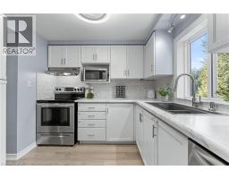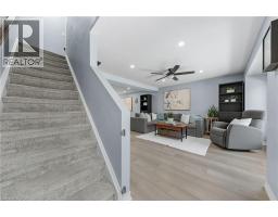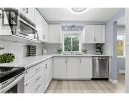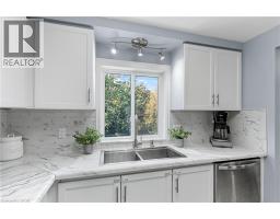 Stylish and spacious 3-storey townhome condo backing onto greenspace! With two incredibly generous bedrooms, modern updates, and a functional layout, this home is ideal for anyone looking for comfort and convenience out of the big city setting. Enter into the foyer on main floor which offers convenient under stair coat closet, a versatile den, perfect for working from home, renovated 2-piece bathroom (2025), laundry area, single car garage access, and direct walk-out to your newer deck (2023) with serene view backing onto Green space. On the second floor, enjoy a bright kitchen with newer countertops and backsplash (2023), and the open-concept living and dining areas with smooth ceilings and pot-lighting that brightens the entertaining area.  Upstairs, you’ll find two exceptionally spacious bedrooms; featuring a wall-to-wall closet and the other with a walk-in closet, a fully renovated 4-piece bathroom (2023) featuring a new tub, and vanity with medicine cabinet mirror. Additional thoughtful updates include new lighting, storage solutions, and custom retractable blinds that add a polished touch throughout the majority of the home. Location highlights include quick access to the University of Guelph, local trails, and the nearby conservation area for hiking and canoeing. Daily essentials are minutes away with grocery stores and restaurants in walking distance, while weekend escapes are easy with Downtown Guelph, and 401 access just 15 minutes away and destinations like Elora Mill Spa within half an hour. This home combines thoughtful upgrades, a functional layout, and a fantastic location — ready for its next owner to enjoy. (id:50886)