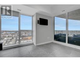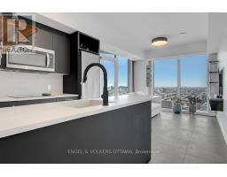 Beautiful one-bedroom condo offering stunning north-facing city views and sweeping vistas of the Gatineau Hills from the 32nd floor. Floor-to-ceiling windows flood every room with natural light, and the spacious balcony-where electric BBQs are permitted-provides an ideal spot to unwind and take in the scenery. The open-concept kitchen overlooks the living area and features custom concrete countertops and quality Whirlpool appliances. The bedroom includes a generous closet and floor-to-ceiling windows, offering excellent privacy while maintaining brightness. This unit includes exclusive underground parking with a dedicated attached storage locker. Residents enjoy an impressive range of amenities, including a concierge, indoor pool, yoga studio, fitness centre, sauna, and a meeting/party room. Tenant is responsible for electricity, cable, and Wi-Fi. (id:50886)