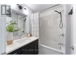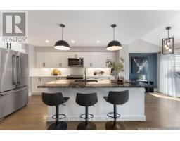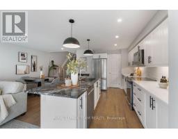 This beautifully updated 3 bedroom, 2.5 bathroom, 2020 Patten-built townhome offers a perfect balance of style, comfort, & convenience. You are welcomed in through the spacious foyer, with tiled floors, past the access to your garage and into your open concept main floor. Featuring hardwood floors throughout, a stunning fireplace as the centerpiece, & abundant natural light from the oversized living room window, this home is sure to impress at every turn. The kitchen showcases timeless design with a subway tile backsplash, quartz & marble countertops, farmhouse sink, overhanging island seating & a spacious walk-in pantry. The white cabinetry runs flush with the bulkhead for a clean & elevated look. The dining area features builder-installed pot lights & upgraded fixtures, creating an inviting space for family meals & entertaining. This level is complete with a powder room & its elegant design features. Upstairs, the primary bedroom is spacious with a vaulted ceiling accent, a walk-in closet and a stylish 3 piece ensuite bathroom with striking black tile & matching fixtures. This level also features two additional bedrooms that are generously sized, ideal for family or guests. The family bathroom includes large format tile in the shower & an updated countertop. A convenient upstairs laundry room with shelving & washer/dryer combo adds practicality. The builder-finished basement gives additional living space & includes a rough-in for a future bathroom. Outside, enjoy the private backyard with a 2-tiered deck, garden boxes, & gas BBQ line. The PVC fencing (2021) and small grass area make it low-maintenance yet welcoming. Additional features include garage shelving & eavestroughs for easy upkeep. Located in a lovely family-friendly neighborhood, this home is surrounded by multiple parks, soccer fields, & a winter skating rink all within walking distance. Schools, coffee shops, the local library, & Main Street's amenities are just a short 10-minute stroll away. (id:50886)