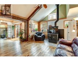 Position your lifestyle in beautiful Boulter, on a rare 28 acre retreat offering not one but two fully functional and independent homes, creating an unparalleled opportunity for multi generational living, income flexibility, or a private family compound. Surrounded by mature forest and abundant wildlife, this property delivers scale, versatility and meaningful optionality. The main residence is warm, inviting and thoughtfully renovated. It features an open concept layout with soaring ceilings, hand hewn beams, hardwood floors and abundant natural light, two bedrooms, a full bathroom, a bright sunroom and multiple decks support comfortable year round living. Heating is optimized through a heat pump, woodstove and charming cookstove. Upgraded insulation, electrical and a steel roof further enhance efficiency and durability. The second dwelling is equally compelling and functions as a true stand alone home. Built for flexibility, it offers two bedrooms, each with its own ensuite and private balcony, plus a full additional bathroom. Baseboard heating and a woodstove support four season use, and generous kitchen/dining and living spaces provide functional utility. Both homes are serviced by their own electrical and septic systems and a shared drilled well. Exterior features include perennial gardens, raised vegetable beds, mature fruit trees, a substantial greenhouse, and multiple storage buildings. The gently sloping terrain, wooded trails and absence of visible neighbours create a serene, private environment ideal for four season enjoyment. Located on a year round municipally maintained road, the property offers seamless access to nearby communities including Bancroft, Combermere and Barry's Bay. Foster Lake Beach, Conroy Marsh Conservation Reserve, recreational trails and other community amenities are located minutes away. If you are seeking seclusion without isolation, this distinctive offering positions a new owner to leverage both lifestyle and investment. (id:50886)