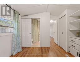 Discover year round living at Lyndhurst Park & Golf course ,a 55+ Adult Community, offering a social setting with an opportunity for affordable living, & private, serene surroundings. This one bedroom, one bathroom home is freshly painted throughout and features an additional bedroom / office. Backing on to the Black River; simply sit back and listen to the sounds of the moving water. This home offers ample outdoor areas for relaxing, BBQing, entertaining or gardening with 2 sheds to store all of your equipment, tools & toys. The bright open living room boasts a propane fireplace to cozy up to on cold nights , multiple windows and a walk out to the bright and airy sunroom. The open concept kitchen / dining room offers plenty of counter, cupboard space & includes a full size stove & fridge and ample bay windows in the dining area making this space a perfect balance. Extra storage is offered with built-ins in the hallway, perfect for a pantry and broom closet.The primary bedroom has multiple windows, built in closets and drawers , and a walk through to the 3 pc bathroom . The second room can be used as a bedroom or office/craft room. The 3 season freshly painted sunroom has a walk out to the back deck and multiple windows. Park Amenities, Including An 18-Hole Golf Course, Outdoor Pool, Dog Park, Trails. This home is move in ready! Monthly Landlease Rental $545.00+HST/mo Includes Rd Maint, Water & Septic. Buyer's subject to Lyndhurst Landlease transfer fee of of 5% of purchase price. Gazebo and two sheds recently removed. Decks repaired and painted. (id:50886)