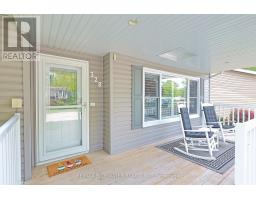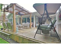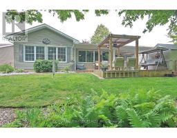 Nicely updated site built bungalow backing onto nature in the land leased community of Grand Cove. This home boasts great curb appeal with the covered front porch entrance, landscaped gardens that surround the home, updated vinyl siding and pitched roof line making it feel like home the moment you drive up the quiet street. Inside you have the popular Newcastle II floor plan featuring an open concept design with large principle rooms flowing with natural light. Large U shaped kitchen updated in 2021 with white shaker cabinetry all fitted with pull out drawers, granite countertops and tile backsplash. Dining room off the kitchen with extra window for more natural light. Spacious living room with gas fireplace on an accent wall surround, overmount lighting above and oversized picture window. At the back of the home you have an added on family room with a wall of windows overlooking nature leading to a 3 season sunroom with built in cabinetry for storage and walk out entrance door to the back deck. The quality of this home shows throughout with engineered hardwood flooring throughout the main living space and California blinds on almost every window. Main floor primary bedroom suite with walk in closet and updated ensuite bath that includes a large walk in shower and stacking laundry. Guest bedroom and updated main floor bathroom complete the inside of the home plus allow friends and family to visit. Updated furnace and AC in 2022, redesigned roof line in 2016, updated windows and plug in generator ready. The back yard is your own private oasis backing onto nature and a mature treed setting. Spacious back patio with covered eating area and gazebo to enjoy your afternoon conversations. Grand Cove Estates is a land lease community located in the heart of Grand Bend with activities for everybody from the heated saltwater pool, tennis courts, lawn bowling, dog park and so much more. All this and you are only a short walk to downtown and the sandy beaches of Lake Huron. (id:50886)