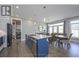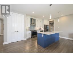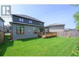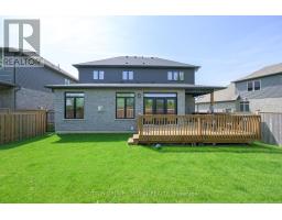 Step into refined living with this exquisite residence, perfectly positioned in a quiet enclave of executive homes. Combining timeless elegance with modern functionality, this property offers an unparalleled lifestyle just moments from top-tier amenities, including upscale shopping, championship golf courses, nature trails, the aquatic centre, hospitals, and the University. The homes striking exterior blends brick, stone, and siding in soft earth tones, exuding sophistication. A welcoming front porch invites you to relax, while the spacious back deck partially covered for year-round enjoyment is ideal for alfresco dining against breathtaking western sunsets. Inside, rich oak hardwood floors flow throughout the main level, complemented by a dramatic ebony-tone staircase with iron railings. The open-concept layout effortlessly connects distinct living spaces, anchored by a fabulous great room featuring a gas fireplace with floor-to-ceiling tile surround. Expansive windows and transom details flood the home with natural light, enhancing the airy ambiance. The chef-inspired kitchen is a masterpiece of design, boasting high-gloss white cabinetry contrasted with sleek graphite accents, a 4-seat quartz waterfall island, and premium finishes. The main floor also includes a private office, a formal dining room, and a practical laundry/mudroom with built-in lockers. Upstairs, the lavish primary suite offers two walk-in closets, and a spa-like 5-piece ensuite with dual sinks and a glass/tile shower. Three additional bedrooms provide ample space for family or guests. The professionally developed basement features a sprawling games/media room, a fifth bedroom, and a full washroom perfect for guests or entertainment. Enjoy a maintenance-free lifestyle with snow removal, lawn care, and driveway services covered by a modest $307/month fee, leaving you free to explore nearby Sunningdale Golf Club or the scenic Medway Valley Heritage Forest. (id:50886)