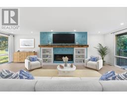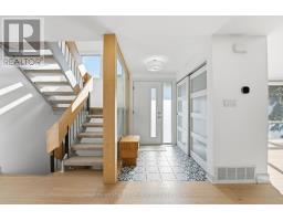 Backed by a private ravine lot and framed by a dual-level walkout terrace, 33 Commanche Drive offers the rare feeling of retreat within the city. Beautifully redesigned from 2021-2025 with care, craftsmanship, and modern comfort. The open-concept main floor was rebuilt for effortless living, featuring engineered hardwood, a new front door with glass-partition entry, pot lights, and a stunning 2024 kitchen with quartz counters, a large island, GE Café appliances (with fridge hot-water dispenser and Keurig system), and designer finishes. A permitted structural beam creates the bright, flowing layout, while the gas fireplace anchors the living area with warmth and calm. Main-floor laundry and a renovated powder room add convenience. Upstairs, whitewashed and resurfaced hardwood leads to four bedrooms, including a serene primary suite with custom walk-in closet and a spa-like ensuite featuring Statuario porcelain tile, Carrara-porcelain shower floor and threshold, and heated flooring. A fully updated secondary bathroom completes the level. The walkout lower level includes a wellness shower and sauna, full bathroom, wet bar, updated lighting, and a bright entertainment area opening to the private yard. Every major element has been upgraded, including a 200-amp electrical panel, plumbing, designer hardware, air-source heat pump (2023), hot water tank (2025), and updated lighting throughout. Exterior upgrades include Hardie board, Roof with fascia and soffit (2023), new window glass (2021), glass railings, landscaping, irrigation system, landscape lighting, exterior fixtures, and front and garage doors. (id:50886)
