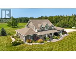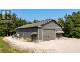 Welcome to this beautifully crafted home, offering comfort, functionality, and elegance. Boasting over 3,100 sq. ft. of thoughtfully designed living space, this residence is set on 54 scenic acres featuring forested trails, a sprawling meadow, and plenty of room to explore. Located just minutes from Tobermory - a picturesque lakeside town known for its crystal-clear waters, dramatic limestone cliffs, scuba diving, and the Bruce Peninsula National Park. With public beaches, hiking, and snowmobile trails nearby, year-round recreation is right at your doorstep. Enjoy peaceful moments under one of three covered decks, relax beneath the pergola, or gather around the firepit. Inside, the home welcomes you with a warm, spacious ambiance. The main level is ideal for hosting family and friends. The custom kitchen is a dream for any home chef, featuring black granite countertops, under-cabinet lighting, pantry, and breakfast bar, seamlessly flowing into the living area and formal dining room. Retreat to the main-floor primary suite, a private oasis complete with two walk-in closets and a luxurious 5-pc ensuite bath. Upstairs, you'll find three generously sized bedrooms and a 4-pc bathroom - ideal for a growing family, guests, or potential bed & breakfast accommodations. Elegant features throughout: hardwood flooring, 10-ft ceilings, transom windows. Modern conveniences abound with a 2-car attached garage, in-floor heating, central air conditioning, main-floor laundry, irrigation system, underground hydro service and an automatic whole-home generator. A true standout feature is the impressive 40' x 80' workshop - perfect for a home-based business or serious hobbyist - complete with in-floor heating. Located a short distance to public water access at Dunks Bay, Bruce Trail access, and the Tobermory airport. This exceptional property combines serene natural surroundings with modern luxury - offering a rare opportunity to live, work, and play in one incredible location. (id:50886)