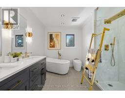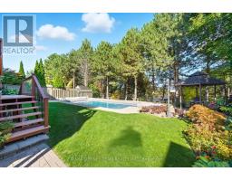 Stunning 4 bedroom, 4 bath, all brick family home featuring a private backyard oasis with inground saltwater pool, lush perennial gardens, gorgeous interlocking patio front/back, vegetable gardens, inground sprinkler system in the front/back, gazebo, new garden shed, 2-tier composite deck with retractable awning, built-in surround sound & glass rails providing unobstructed views of the treed lot behind! The inviting entry leads you through to the traditional main floor plan with hardwood centre staircase with elegant wrought iron spindles. Luxury details throughout include extensive gleaming hardwood floors, crown moulding, smooth ceilings, pot lights & more! Elegant formal living & dining rooms, plus family room make this home ideal for entertaining. Gourmet kitchen boasting granite counters, centre island, backsplash, stainless steel appliances including gas stove & large pantry. The breakfast area offers a walk-out to the deck & backyard. Convenient main floor laundry with access to the fully insulated garage with great storage, car lift, gas furnace, insulated/tiled floors & separate door to the side yard. Upstairs offers 4 generous bedrooms, all with closet organizers, 4pc bath with custom granite double vanity, Toto toilet & double glass rain shower. Incredible primary retreat with french doors, cozy gas fireplace, dream 3.68x3.45 open concept walk-in closet with custom organizers, quartz island & renovated 5pc spa like ensuite with porcelain floors, relaxing stand alone soaker tub, electric toilet, quartz double vanity & double glass rain shower! Room to grow in the fully finished basement with large above grade windows, pot lighting, rec room, 2pc bath, games room with wet bar, cold cellar & garden door walk-out to the patio & pool. Situated in a demand Ajax community, steps to schools, parks, grocery, transits & hwy access for commuters! This home is tastefully decorated & truly exemplifies pride of ownership throughout! (id:50886)