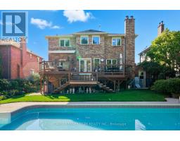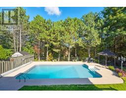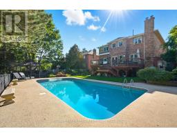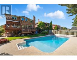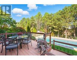 Welcome to this stunning 4 bedroom, 4 bath, all-brick family home exuding timeless elegance and modern comfort in a sought-after Ajax neighbourhood. Set on a premium lot with no neighbours behind, this property offers a private backyard oasis featuring an inground saltwater pool, perennial gardens, interlocking patio, vegetable beds, sprinkler system, gazebo, garden shed, and a two-tier composite deck with glass rails, retractable awning, and built-in surround sound overlooking the treed backdrop. Inside, the grand foyer leads to a traditional yet refined layout highlighted by a hardwood staircase with wrought iron spindles, crown moulding, smooth ceilings, pot lights, and gleaming hardwood floors. Entertain in the elegant living and dining rooms or relax in the cozy family room.The gourmet kitchen features granite counters, centre island, backsplash, stainless steel appliances including a gas stove, and a large pantry. The breakfast area offers walk-out to deck and pool, while the main floor laundry offers access to a fully insulated garage with tiled floors, gas furnace, car lift, and door to side yard. Upstairs, four generous bedrooms each have custom closet organizers. The primary retreat showcases French doors, a gas fireplace, an open-concept walk-in closet with quartz island, and a spa-like 5pc ensuite with freestanding tub, double quartz vanity, and glass rain shower. The finished basement adds a rec room, games area with wet bar, 2pc bath, and walk-out to the patio and pool. Close to top schools, parks, shopping, transit, and highways - this home defines luxury living and pride of ownership! (id:50886)