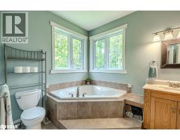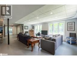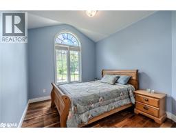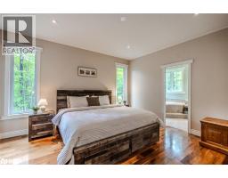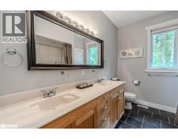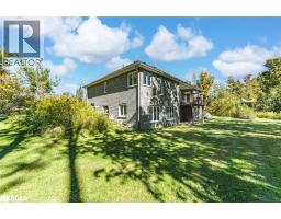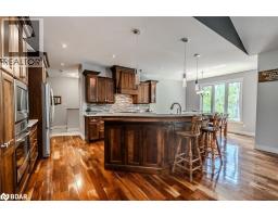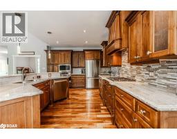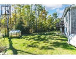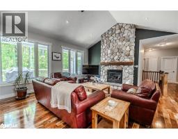OVER 3,500 SQ FT OF LIVING SPACE ON 1.3 ACRES WITH A TRIPLE GARAGE & A 15-MINUTE WALK TO THE BEACH! Tucked among mature trees and moments from the water, this impressive all-brick bungalow offers over 3,500 finished square feet of upgraded living on a peaceful 1.3-acre lot within walking distance to the beach and Bayview Memorial Park with a playground. Enjoy quick access to marinas, trails, schools, and Hwy 11, with both Orillia and Barrie less than 20 minutes away. The landscaped grounds include a greenhouse, perennial gardens, and a welcoming front porch that adds timeless curb appeal. A triple garage and oversized driveway provide ample space for parking, storage, and recreational gear. Vaulted ceilings, walnut-stained hardwood, pot lights, contemporary paint tones, and a dramatic floor-to-ceiling stone fireplace elevate the main living space. The custom kitchen is designed with wood cabinetry, crown moulding, granite counters, a glass tile backsplash, an oversized breakfast bar, and stainless steel appliances including a gas cooktop, wall oven, and built-in microwave. The dining area opens to an elevated deck with peaceful treetop views. A spacious laundry room with storage and sink, along with an open-concept office or playroom, add everyday function. Three bedrooms complete the main level, including a primary suite with pot lights, a walk-in closet, walkout, and a 5-piece ensuite. The finished walkout basement expands the living space with a massive rec room, gym area, den, 3-piece bath, pot lights, concrete floors, and potential for in-floor heating. Two separate lower-level entrances offer flexibility for future plans, including the option to add an elevator. Added upgrades include high-efficiency windows, upgraded insulation, and an ERV/HRV system. Settle into a #HomeToStay that offers long-term comfort in a setting you’ll never outgrow. (id:50886)