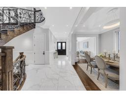 Exquisite custom-built luxury home in Scarborough's prestigious Highland Creek community. This 4+1 bedroom, 7-bath residence features a bright, open-concept layout with 10-ft main-level ceilings, rich hardwood floors, custom wainscoting on all floors, and expansive windows. The second floor boasts 9-ft ceilings with tray accents.Each bedroom includes a private ensuite and walk-in closet, with one offering a Juliet balcony. The gourmet kitchen showcases premium stainless steel appliances, a built-in oven, and custom cabinetry. A curved oak staircase with handcrafted iron railings, LED accent lighting, pot lights, coffered ceilings, and a gas fireplace adds elegance throughout.Upstairs laundry, professionally designed décor, and $20K in Hunter Douglas window coverings enhance sophistication. The high-ceiling basement provides versatile space, and the landscaped yard features an automated sprinkler system.Walking distance to top schools and minutes to GO Station and Highway 401-luxury and convenience combined in one exceptional home.A truly one-of-a-kind home! (id:50886)