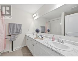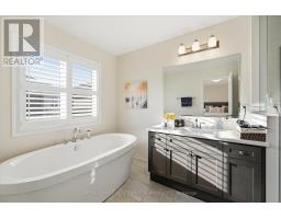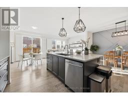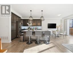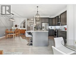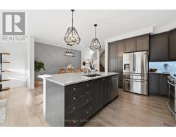 QUIET STREET IN THE PRESERVE JUST STEPS TO CHARLES FAY POND! This stunning two-storey freehold townhome offers nearly 2,000 square feet of upscale living space, thoughtfully designed for both family comfort and effortless entertaining. The main level features an airy open concept layout with engineered hardwood flooring, a sunken foyer, powder room, stylish dining room with a designer feature wall, and a spacious living room with a walkout to the backyard. The stunning gourmet kitchen showcases an abundance of soft-close cabinetry, pantry, quartz countertops, a designer backsplash, stainless steel appliances, and an oversized island with breakfast bar - perfect for casual meals and gatherings. Upstairs, the generous primary bedroom offers a walk-in closet and a spa-inspired four-piece ensuite with a freestanding soaker tub and frameless glass shower. Two additional bedrooms, a five-piece main bath with double sinks, and a convenient laundry room complete the upper level. Additional highlights include 9' ceilings throughout the main level, California shutters, an oak staircase with wrought iron pickets, engineered hardwood flooring throughout the upper hall, rough-in for central vacuum, inside entry from the garage, and a fully fenced backyard. Enjoy terrific curb appeal with stone accents on the front exterior. This coveted Preserve neighbourhood offers close proximity to Oodenawi Public School, Sixteen Mile Sports Complex, parks and trails, shopping, restaurants, hospital, River Oaks Community Centre, and everyday conveniences. A perfect blend of function, style, and an unbeatable Glenorchy location! (id:50886)