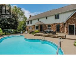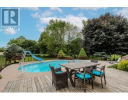 Welcome to the ultimate blend of comfort and serenity in the heart of Caledonia. This stunning country home offers 3965sf of total living space, combining timeless charm with functional design for peak family lifestyle. Situated on a quiet, dead-end street steps from the Grand River and mins from amenities, this property delivers the best of both peaceful countryside surroundings with daily convenience. Set back from the road on a professionally landscaped large private lot, the curb appeal is undeniable. A 200ft asphalt driveway leads to a triple car garage with room for 68 vehicles, and an extra-wide front porch invites you in. Inside, find a thoughtfully designed main floor featuring laminate flooring throughout. The living room is bathed in light due to oversized windows, while the dining room provides ample space for meals and entertaining. The heart of the home is a farmhouse style eat-in kitchen with a large island with breakfast bar, SS appliances, tile backsplash, coffee/wine bar, and seamless flow into the family room with gas fireplace, wainscoting, and French doors to the backyard. A convenient entrance from the back deck leads to a laundry room and full 3pc bath perfect for pool days! Upstairs, a window seat nook adds character and charm. The expansive primary suite features a walk-in closet and a 4pc ensuite with extra-large jacuzzi tub. 3 additional bedrooms2 with walk-in closets and Deacons benches w/ storage and a 4pc bathroom complete this level. The partially finished basement offers in-law potential with a separate entrance, large sitting room and an additional versatile space ideal for an office, games room, or guest bedroom. Step outside to your very own entertainers dream yard, complete with wood deck, stamped concrete patio, tons of green space, and a fully fenced in-ground pool with slide perfect for summer fun with family and friends. A rare opportunity to enjoy a peaceful rural setting without sacrificing space, style, or convenience! (id:50886)