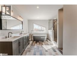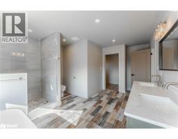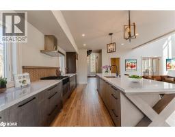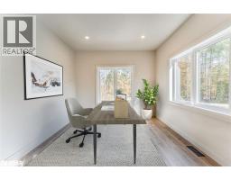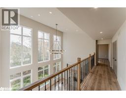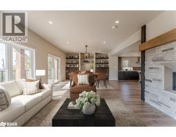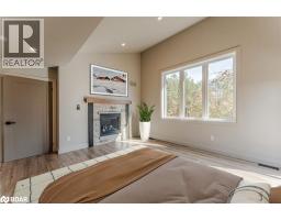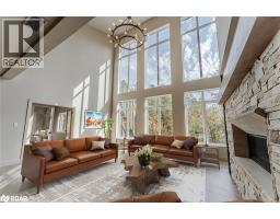 2024-BUILT 4,200+ SQ FT CHALET-STYLE RESIDENCE MEETS FOUR-SEASON ADVENTURE IN HORSESHOE VALLEY! Indulge in the artistry of modern design at this custom-built 2024 home in Horseshoe Valley, capturing panoramic western views and sunsets from its commanding hilltop setting. Boasting over 4,200 sq ft of above-grade living space, this modern chalet showcases striking black Hardie Board siding, stone facade accents, a fibreglass roof, and multiple glass-railed decks designed to celebrate the surrounding scenery. The open-concept main level is ideal for entertaining, highlighted by a 24-ft vaulted ceiling, floor-to-ceiling windows, and a double-sided Napoleon fireplace connecting the great room to the dining/family areas. The gourmet kitchen features Caesarstone quartz countertops, custom two-tone cabinetry, a dramatic X-leg island, a chevron tile backsplash, a pantry, and modern lighting, all flowing to a dining area with built-in shelving and a walkout. A private main-floor office provides a peaceful workspace, while the third level hosts the luxurious primary suite with its own fireplace, balcony, walk-in closet, and spa-inspired ensuite with a freestanding tub, double vanity, and glass shower, along with two additional bedrooms, a full bathroom, and a laundry room. The ground level extends the home’s versatility with 9’9” ceilings, a bright rec room, an additional bedroom, and a full bathroom. Engineered hardwood, ceramic tile finishes, and meticulous craftsmanship are complemented by superior construction featuring an ICF foundation, LVL beams, and double-studded 2x6 walls. Within walking or golf cart distance to Horseshoe Resort, The Valley Club, tennis courts, and scenic trails, and just minutes to Vetta Nordic Spa, Copeland Forest, Lake Horseshoe, local dining, and Highway 400, this exceptional home is also near a new school, community centre, clinic, and fire station, defining sophisticated four-season living in one of Ontario’s most prestigious destinations. (id:50886)