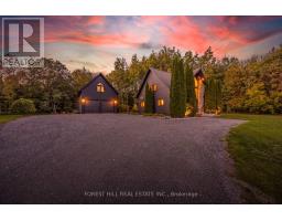 A stunning executive 4 bed, 3 bath Viceroy home, fully renovated-blending timeless craftsmanship w/ modern luxury. nearly 2 acres of private-manicured estate grounds surrounded by forest & apple trees, this property offers privacy, elegance, & space to live, work, & play. Inside the open-concept layout is filled w/ natural light, showcasing hand-hewn post-and-beam accents, custom finishes, & thoughtful upgrades. The main floor features: chefs kitchen w/ solid wood cabinetry, quartz counters, striking backsplash, & professional-grade appliances. A wood-burning fireplace anchors the breathtaking living room, while the formal dining area, custom bar, oak bench & shelving in the foyer, & walkout to backyard balance rustic charm w/ modern design. A 3 pc bath & 2 bedrooms complete this level. Upstairs, a breezeway overlooking the main floor leads to the luxurious primary suite, a private retreat w/ a spa-inspired 4-pc ensuite, upgraded closets, new flooring, & refined finishes. The lower level offers versatility with a walkout/walkup separate entrance ideal for multigenerational living, guests, or private suite. It includes a custom laundry room w/ quartz counters, remodelled bathroom w/ bathtub, spacious family room, games room w/pool table, & large 4th bedroom. Additional living space is found in the fully insulated & heated 600 sq ft loft above the detached two-car garage, perfect as a 5th bed, office, or studio, plus a lower storage level rarely seen in garage. Every major system has been upgraded, including central air, a 24KW Generac generator w/ automatic transfer switch, large owned hot water tank, new water treatment system, & 3,785L propane tank. The exterior shines with fresh paint on the home and garage, resurfaced recycled asphalt driveway & new eavestroughs. Location is everything, 7 min to Wasaga, 15 min to Barrie & close to all amenities, the ultimate commuters dream where modern luxury meets rustic elegance. *1459+1008 sq ft house + 600 sq ft loft* (id:50886)