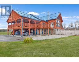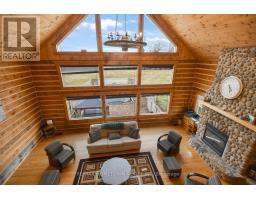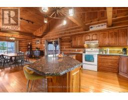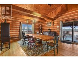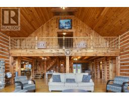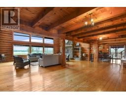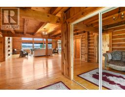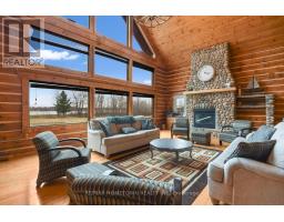 If you've been dreaming of a log home, this is the one. Set on 14 private acres with direct frontage on Graham Lake, this stunning property offers the perfect blend of rustic charm and modern comfort, ideal for year-round living, weekend escapes, or multi-generational families. A spacious deck leads to the main floor entry, where you're welcomed by a large, functional kitchen with plenty of cupboard and counter space, plus an island for extra prep or dining space. The laundry is just off the kitchen. The oversized DR offers the perfect setting for indoor gatherings during the colder months. A doorway opens into the magnificent living room, where a stunning stone fireplace anchors the space. Wall-to-wall windows provide year-round views of the pool and Graham Lake, flooding the home with natural light. If you love bright, open living, this space delivers. You'll also find a side door that leads to an outdoor deck overlooking the pool and hot tub area, perfect for relaxing or entertaining in the warmer months. Also on the main level are 2 generously sized bedrooms and a 4pc bath, ideal for guests or for parents with mobility needs. Upstairs is your private retreat. Overlooking the living room and lake, this loft-style level includes a spacious PR with a walk-in closet, a 4-piece ensuite, and direct access to an interior balcony with gorgeous lake views-your own peaceful perch to unwind. There's also an additional room perfect for a home office, or TV room. The lower level walks out to the pool area, a pellet stove for cozy winter comfort, 2 more bedrooms, a 3-pc bath, a large open area ideal for a FR or easily converted into an in-law suite. Whether you're looking for a place to raise a growing family or need space for multi-generational living, this home offers flexibility, comfort, and natural beauty. The current owner has used the property for Airbnb, and in 2024, after paying Airbnb, it was 62,000 taxes in that included 44 nights booked with an av of 2.6 nights (id:50886)