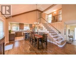 Executive Home in Orillia's Prestigious North Ward This immaculate residence located in Orillia's desirable North Ward, offering a perfect blend of style, space, and convenience .The main floor is designed for modern living, featuring a bright open concept layout highlighted by a dramatic vaulted ceiling and expansive natural light. The area includes a large, bright kitchen and dining area, ideal for entertaining. A versatile main floor den can easily serve as an extra bedroom if required. Step out onto the raised deck, which provides an excellent vantage point overlooking the private lot.The upper level features three generously sized bedrooms, including a peaceful primary bedroom complete with a 3-piece ensuite bath.The finished lower level significantly expands the living space, boasting a comfortable family room with a walk-out, a dedicated exercise area, and ample storage. The home is efficiently heated by gas heat. This exceptional property is conveniently located on a bus route and is just moments away from schools, recreation trails, and the beautiful Couchiching Beach Park. (id:50886)